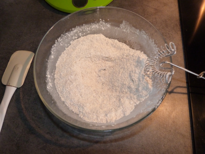 Pesez ensuite ensemble les poudres, et mélangez les au fouet.