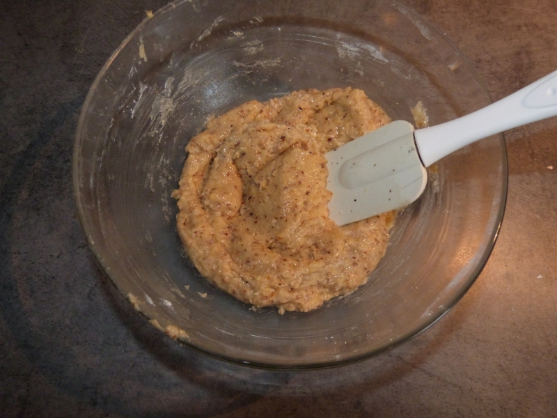 Ajoutez ensuite le beurre fondu refroidi, et mélangez, toujours à la maryse.