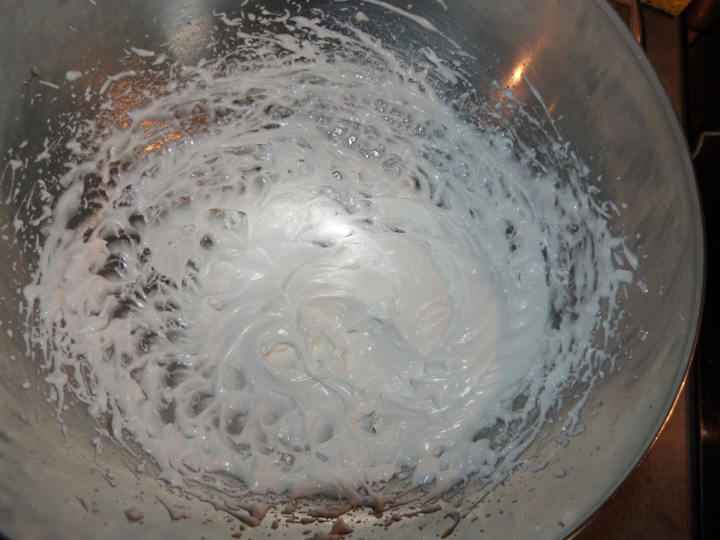 Une fois le sirop à 120°, versez le en mince filet sur le bord de votre cul de poule sans jamais arrêter de battre.