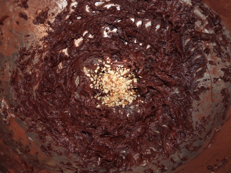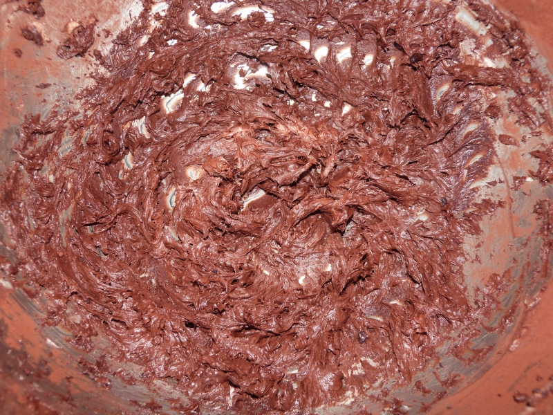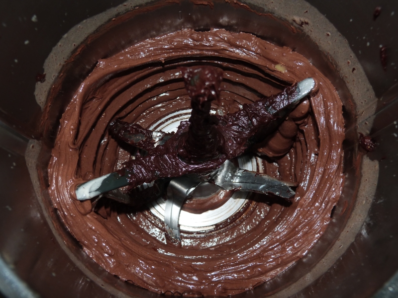 Un peu las de la simple ganache chocolat, je cherchais une autre recette, plus puissante, et j’ai eu l’idée de partir sur le principe de la crème au beurre, et d’y incorporer du cacao 100%. En suivant ce cheminement, je me suis dit, pourquoi ne pas aller encore plus loin, et tenter de donner à la garniture une saveur unique. D’où l’idée d’ajouter à tout cela de la pâte de pécan pour obtenir une saveur proche du brownie