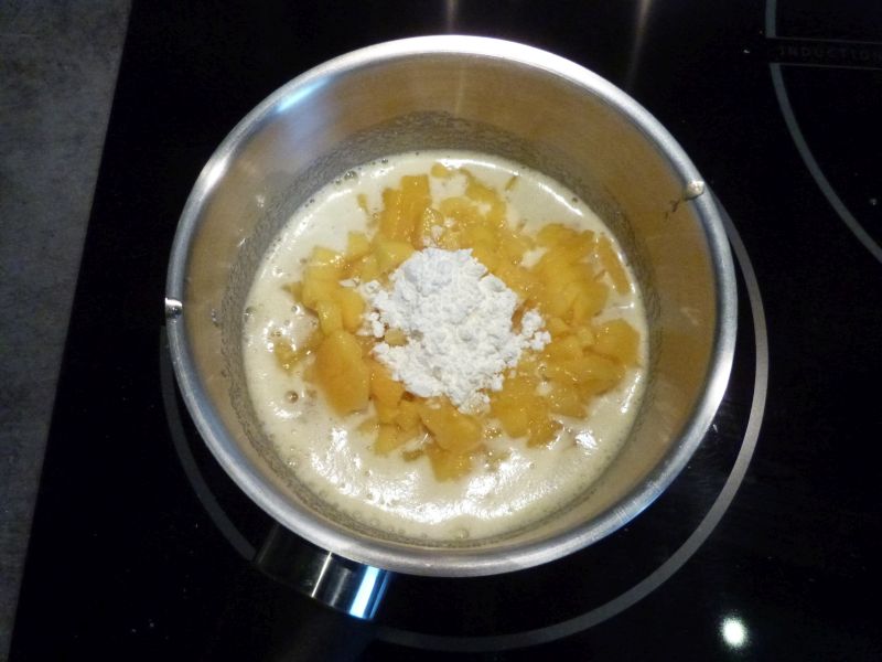 Pour la recette, je me suis servi de fruits en conserve. Je sais, c’est mal, mais ça n’étais plus la saison…