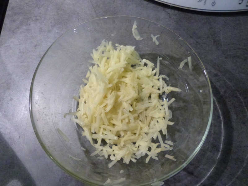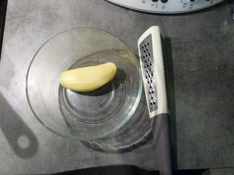 Commencez par éplucher la pomme de terre, puis découpez la en julienne. Pas de panique, pour ce faire, il suffit de la râper avec une râpe a gros trous, comme celle la :