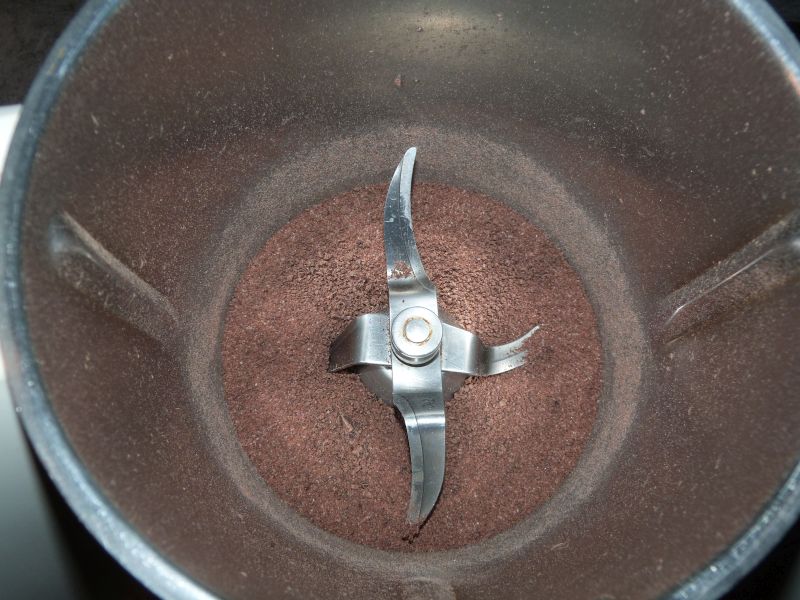 Faire tourner 10 s vit 10 et rabattre la poudre éventuellement collée aux parois.