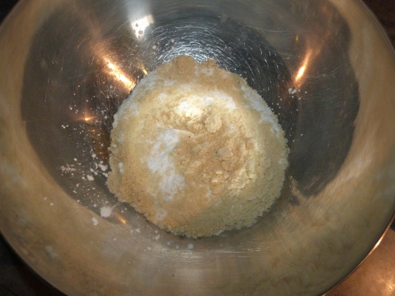 Commencez par réaliser le fond de tarte. Pesez ensembles les différentes poudre (Farine, Maïzena, Sucre Glace, Poudre d’Amande et Sel), et mélangez les à la cuillère magique.
