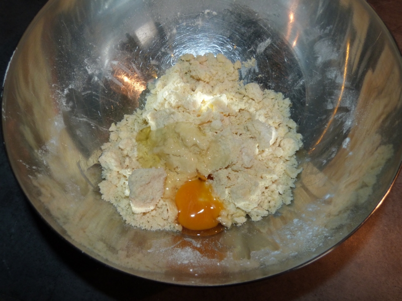Ajoutez l’oeuf et continuez à mélanger la pâte à la main, sans trop la travailler, le mélange doit juste être homogène.