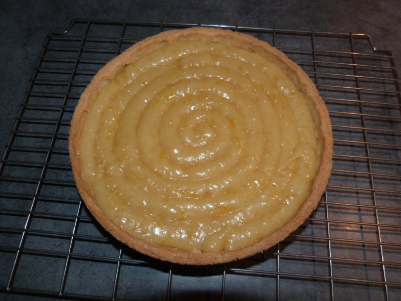 Une fois que le fond est froid, garnissez le lemon curd dans une poche munie d’une douille lisse entre 8 et 10 mm, et dressez la tarte (généralement, en commençant par le milieu).