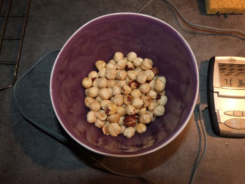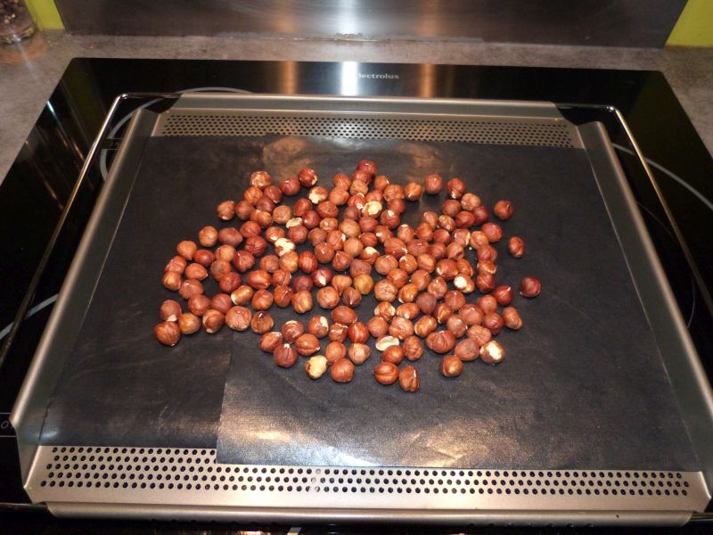 Commencez par torréfier les noisettes au four à 150° pendant 20 min. Laissez refroidir.