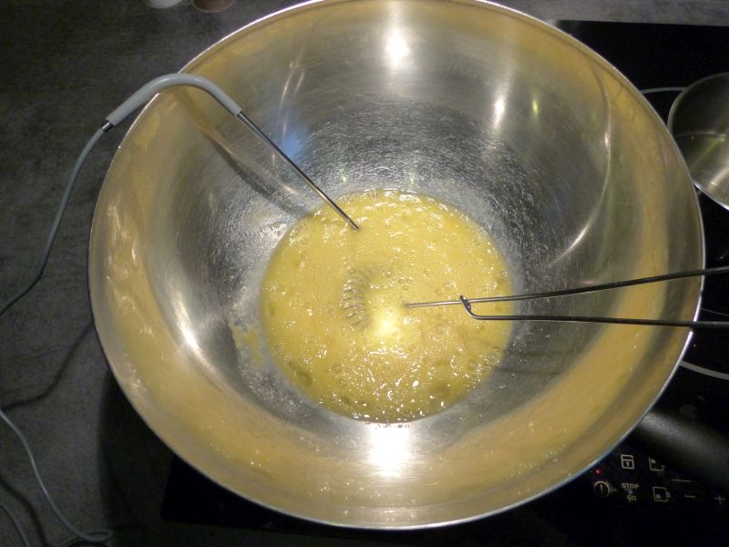 Fouettez le mélange œuf/sucre et faites le chauffer au bain marie à 60°