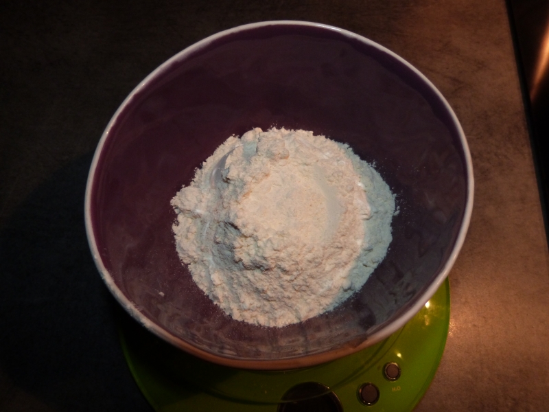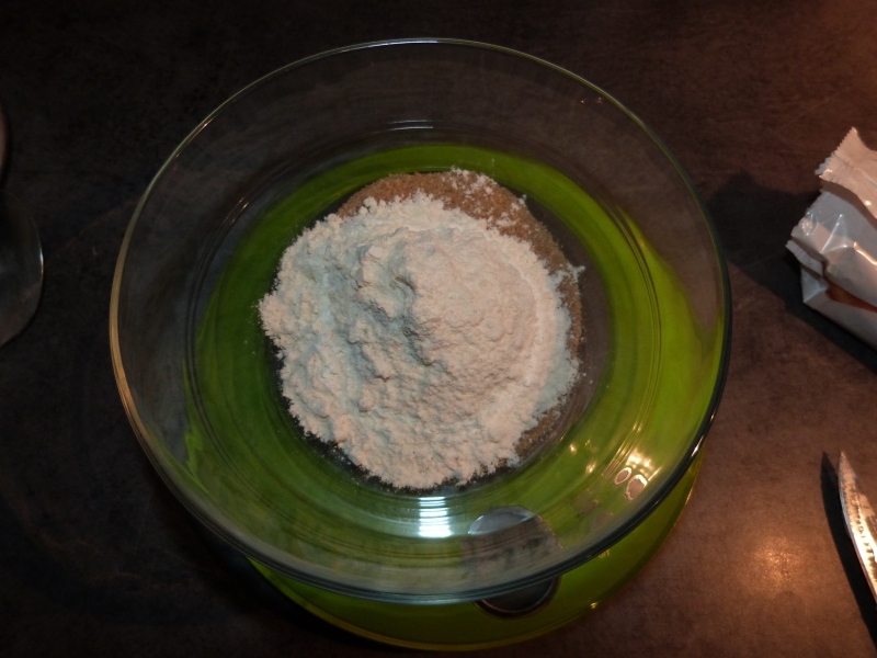Les choux maintenant. Pour cela, nous allons commencer par la pâte a crumble. Pesez les poudres,