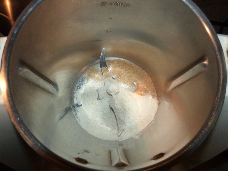 Mettez les poudres dans le bol et mixez 5 sec vit 5.