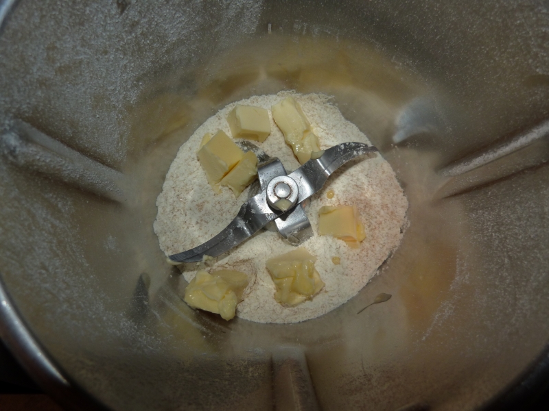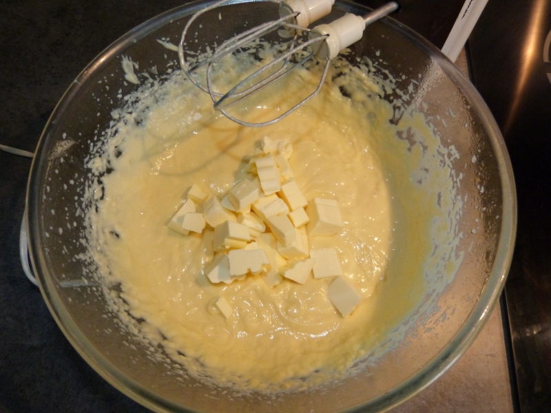 Commençons donc maintenant la pâtissière. Mettez tous les ingrédients (sauf le beurre) dans le bol
