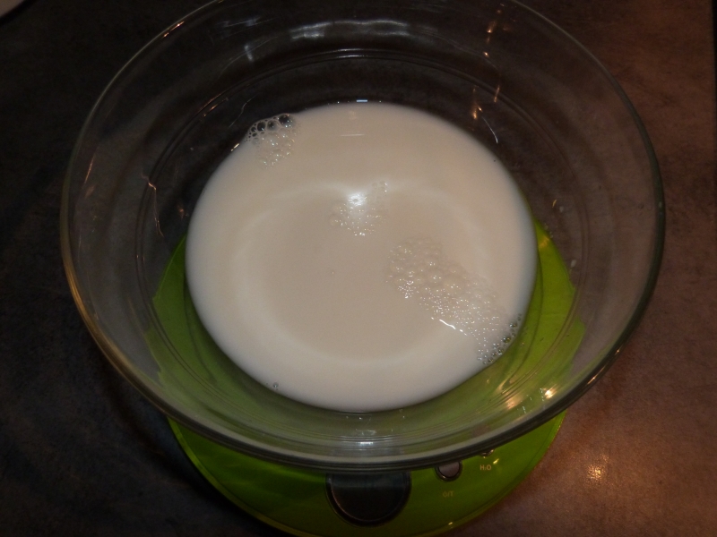 Pesez l’eau + le lait + le beurre + le sucre + le sel