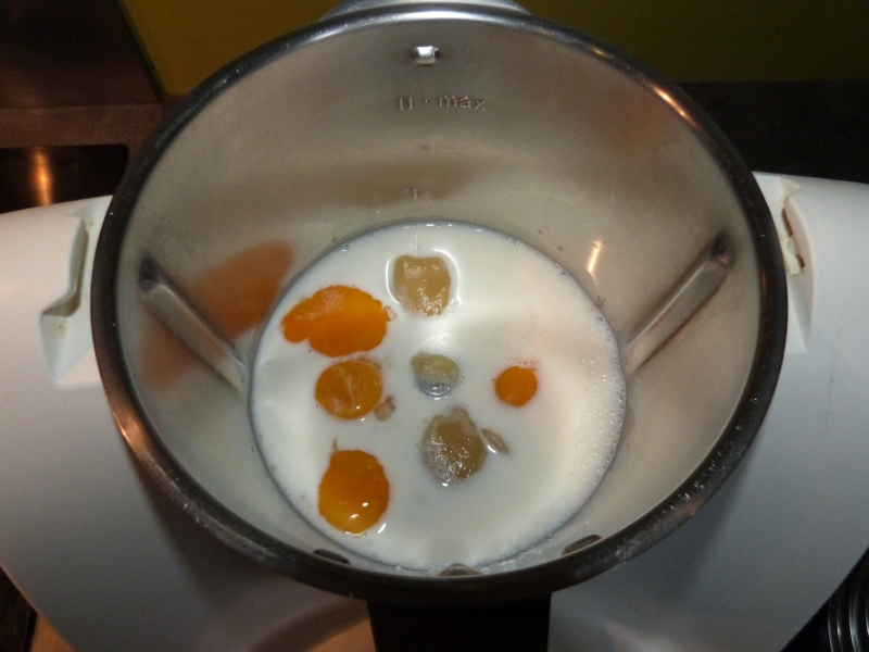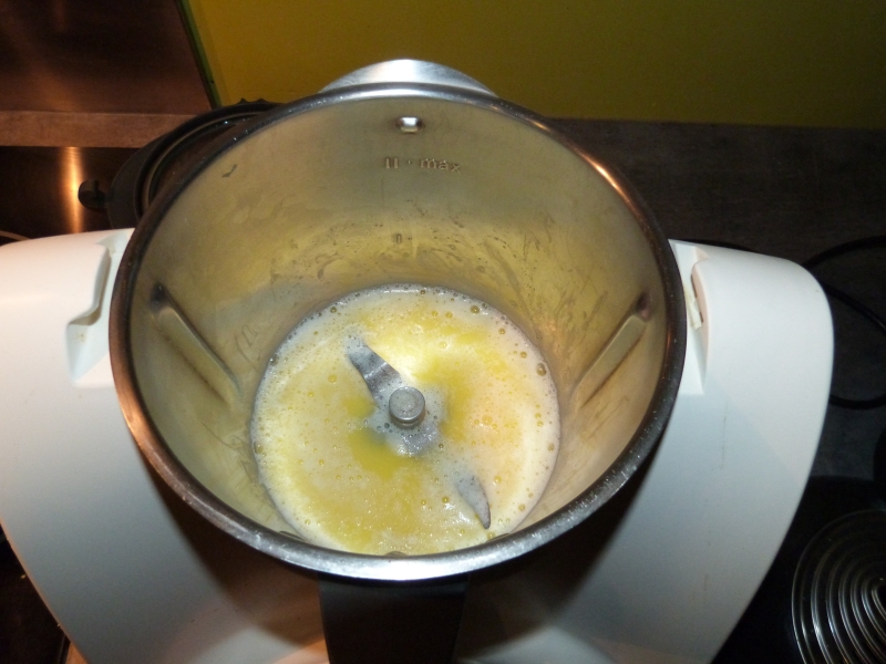 Après ce temps de pause, refermer le bol et faire tourner à vit 5. puis casser les œufs un à un et laisser tourner encore 30 sec après le dernier œuf.