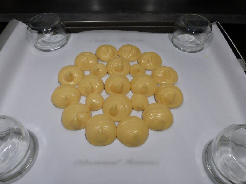 Petit détail amusant, j’ai été obligé d’utiliser une verrine comme emporte pièce parce que je n’avais pas d’emporte pièce rond de la bonne taille. Il s’avère que c’est Mr Conticini qui est l’inventeur des verrines, alors merci à lui pour nous permettre d’avoir de petits verres qui servent a tout, finalement.