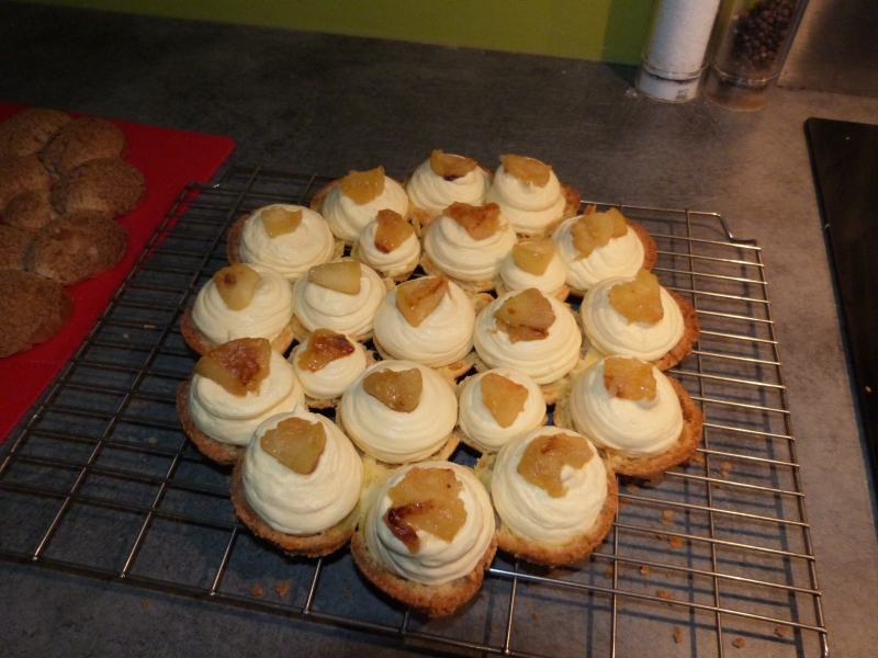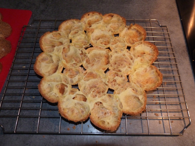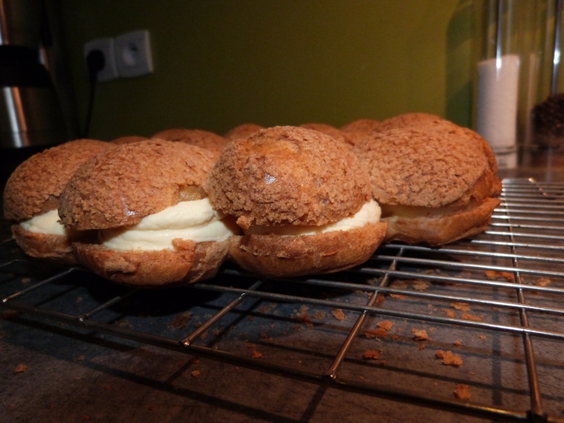 Voici maintenant une pure création, que j’ai réalisé en m’inspirant du magnifique Paris Brest de Philippe Conticini. De l’original, donc, j’ai gardé la forme ronde, et la construction, a partir de choux collés les uns aux autres, mais, invention oblige, j’ai pour ma part rempli le cercle d’autres choux, ce qui s’est avéré un peu plus dur a cuire qu’un Paris Brest Classique. Le nom ensuite, j’ai choisi Alençon parce que ce gâteau ci est à base de pomme, donc, rappel de la Normandie, et mes beaux parents étant natif de la bas, c’est la première ville normande qui me soit venue a l’esprit.