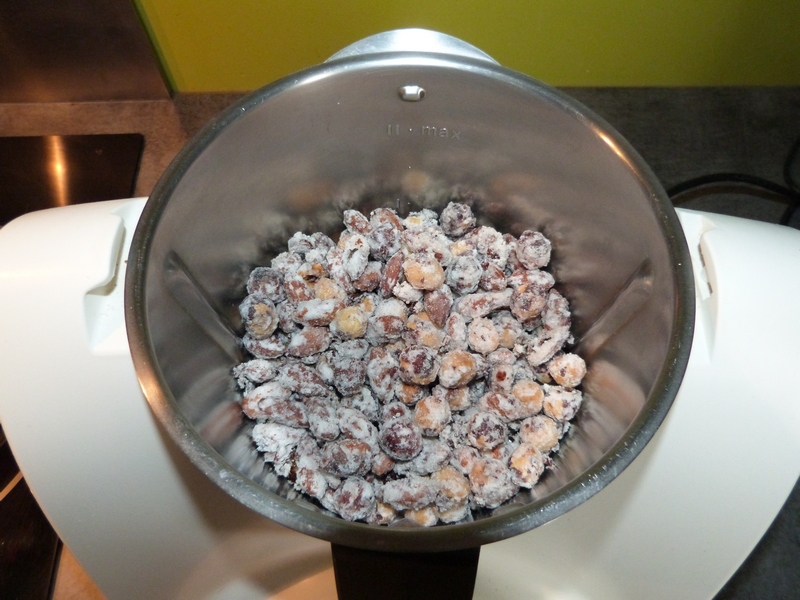 j’ai donc laissé les noisettes/amandes sablées, tout mis dans le TM tel quel et tourné 1mn / Vit 10