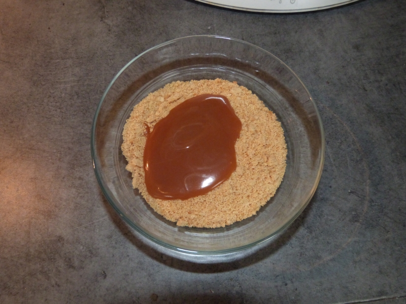 Verser la poudre obtenue dans un récipient, ajouter le caramel et la cannelle et mélanger a la maryse.