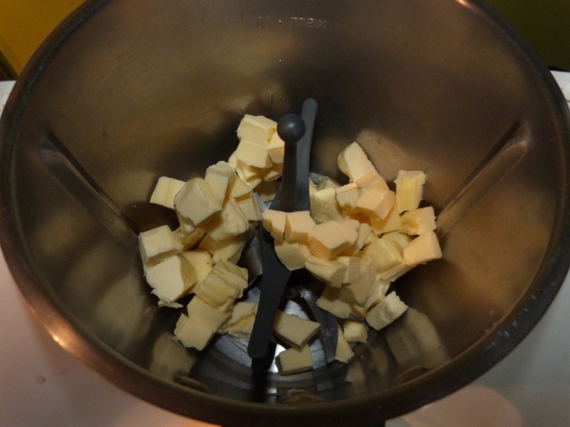 placer le beurre en morceau dans le bol du Thermomix,