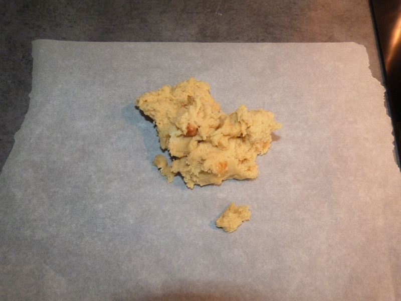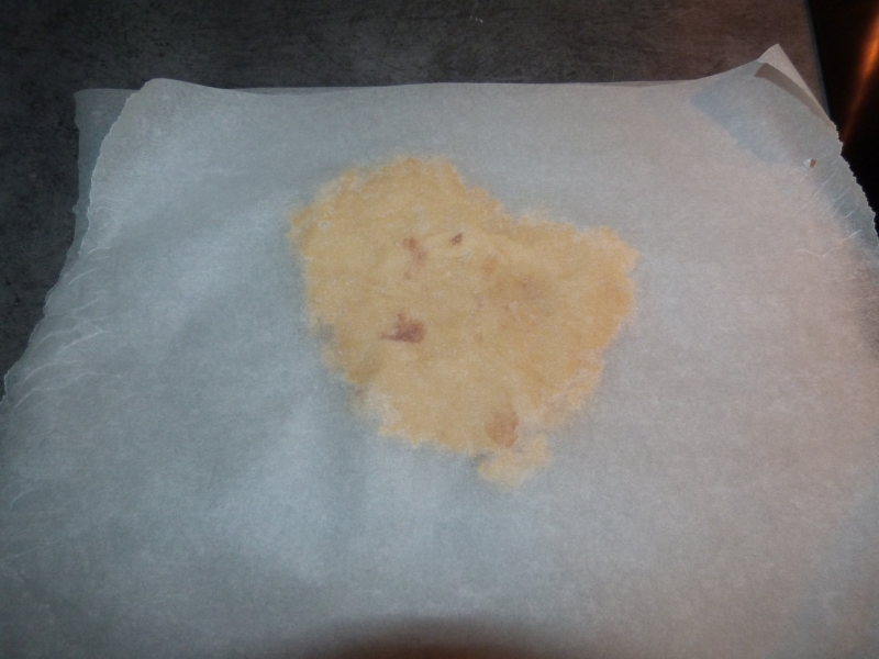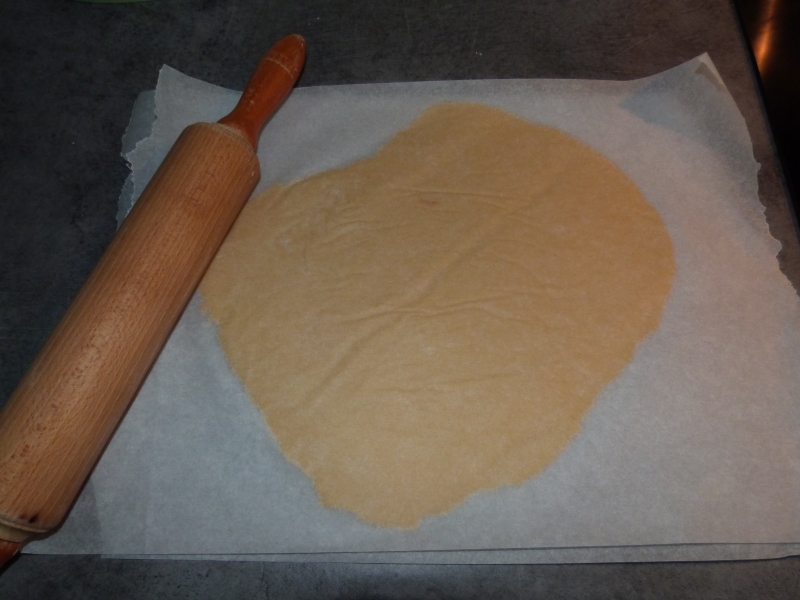 (J’utilise la technique des 2 feuilles de papier sulfurisé parce que je n’ai qu’un rouleau en bois, qui aime beaucoup accrocher la pâte.)