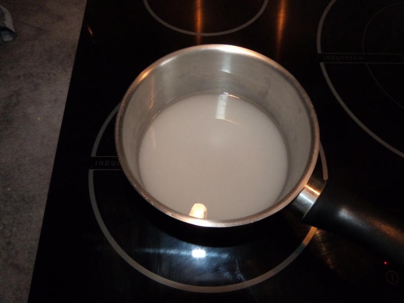 Mettre les 150g de sucre et les 50g d’eau dans une petite casserole.