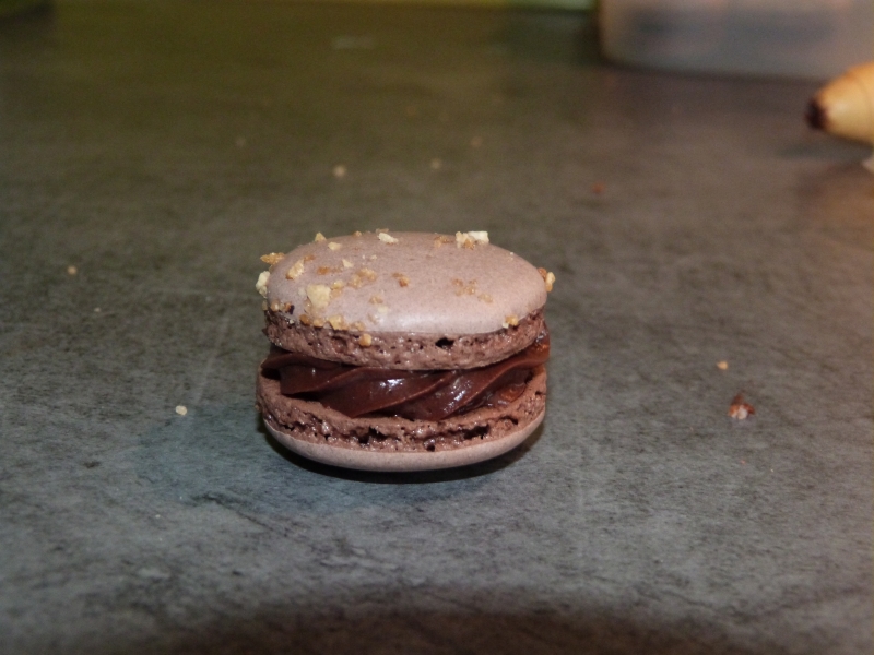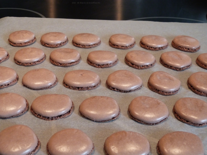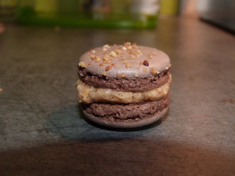 Macarons chocolat ganache beurre praliné (meringue version liquide)