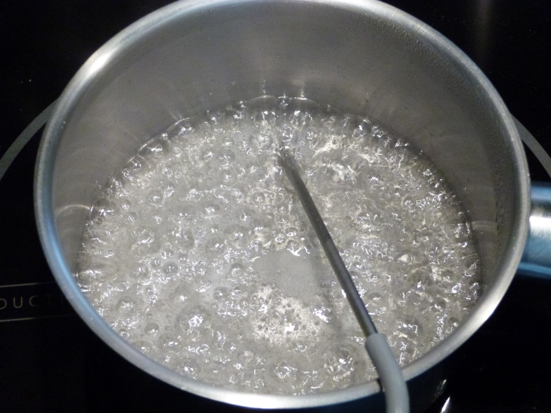 A ce moment, commencez le sirop et laissez le monter a 118°.