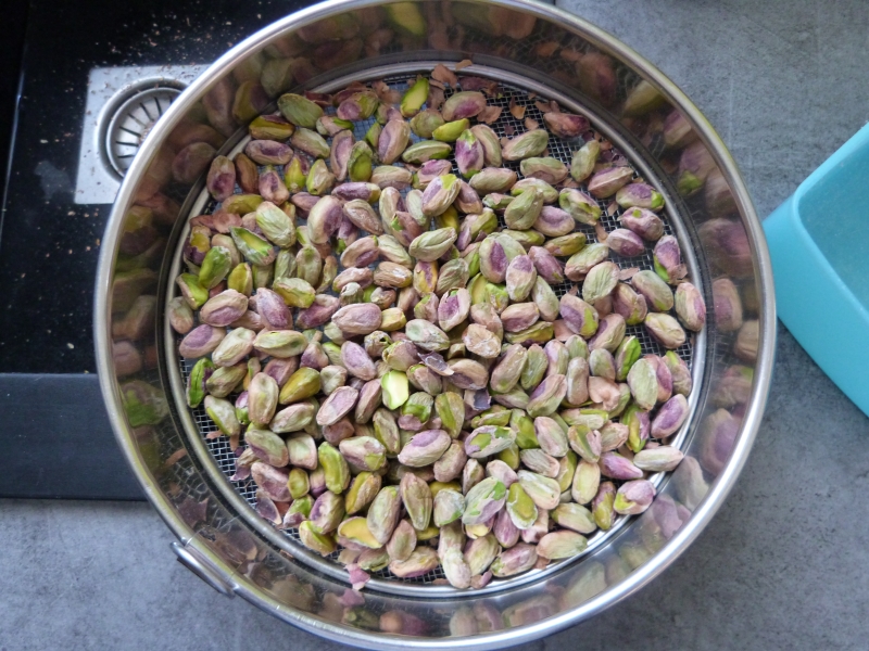 Les pistaches obtenue sont bien sur moins verte que celle achetées directement dans le commerce (il doit y avoir une technique plus efficace pour se débarrasser de toutes les peaux), mais le goût y est.