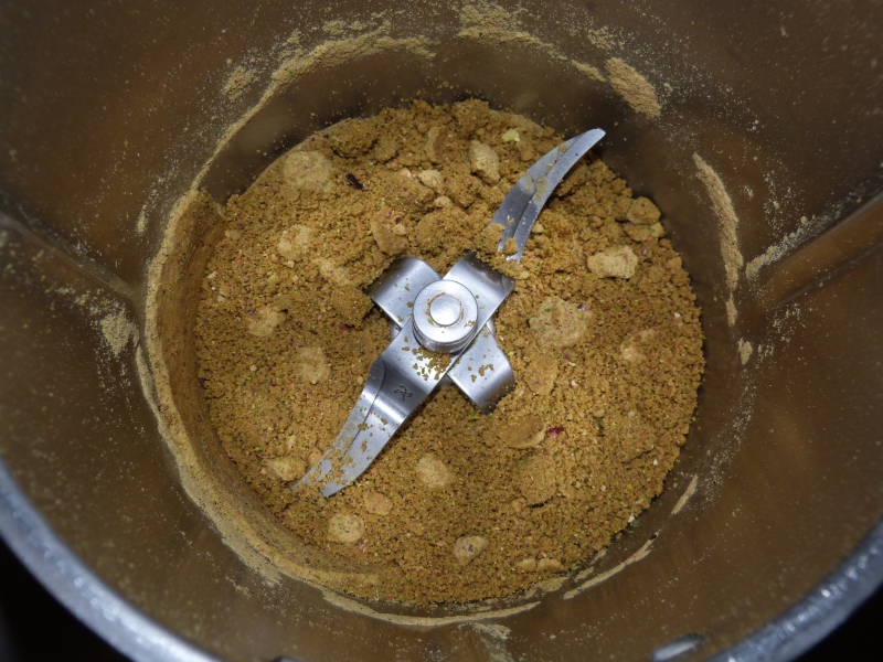 Pour info, pour obtenir une poudre de pistache bien fine, placer vos pistaches dans le bol du TM :