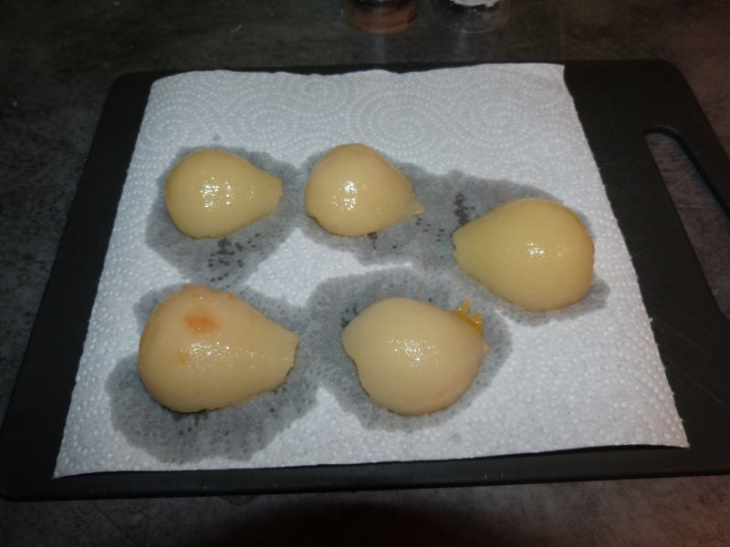 Pendant le refroidissement, vous pouvez assécher un peu les poires sur du sopalin.
