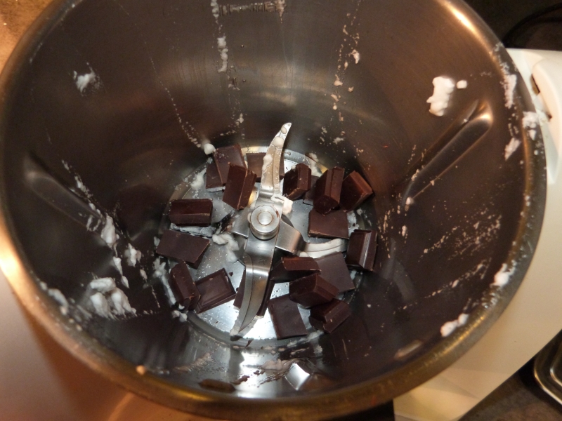 Mettez le chocolat et le sucre dans le bol et mixez 10 sec vit 9.