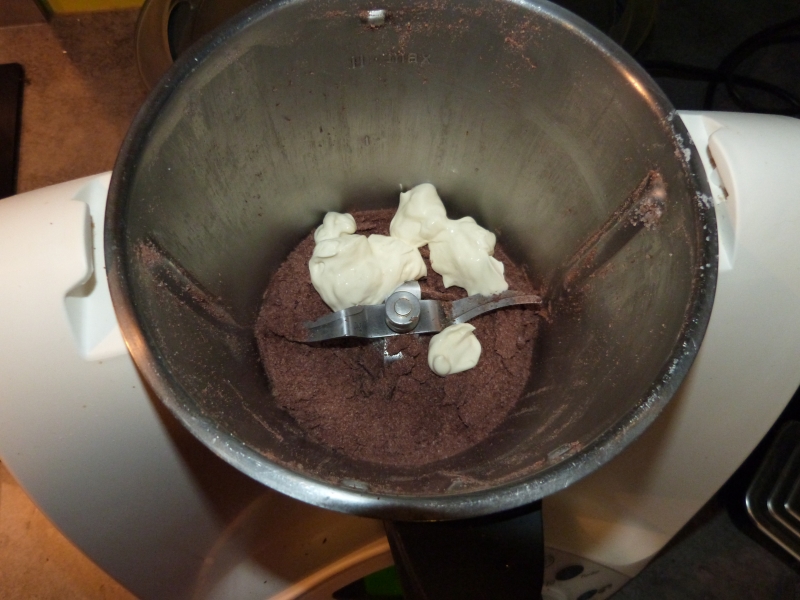 A la fin de la minuterie, ajoutez les jaunes réservés plus haut et mixez 15 sec vit 4.