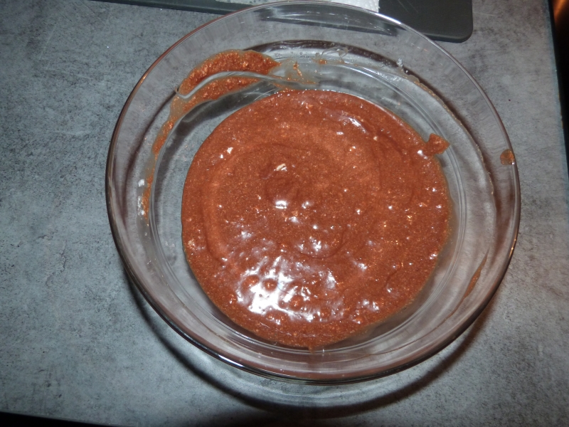Ajouter ensuite ces 75g a votre préparation, et mélanger doucement, sans trop apporter d’air la pâte sans quoi votre gâteau va gonfler a la cuisson, ça n’est pas ce que l’on recherche.