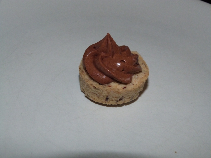 J’aime toujours faire de nombreux essais de biscuits, sans forcement suivre une recette quelconque, mais plutôt en partant au feeling, puis en ajustant les recettes au fur et a mesure de mes essais. Voici donc l’un des fruits de ces tentatives, un biscuit au bon gout de noisette, surmonté par une mousse meringuée chocolat.
